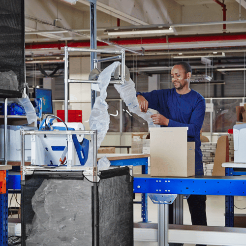 Ontdek alles over opvulling en beschermingOn-demand verpakkingsoplossingen zijn machines die opvul- en beschermingsmateriaal genereren op het moment dat het nodig is, direct op de werkvloer. Ze zijn ontworpen om meerdere inpakstations te voorzien vanuit één centrale unit en worden afgestemd op jouw logistieke proces. Dit resulteert in een hogere productiviteit, minder opslagruimte en lagere verbruikskosten.